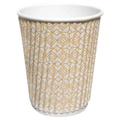 New! Yellow Diamonds Groove Hot Paper Cups. Bright and Fresh Colors! These cups do not require sleeves for heat insulation of hot beverages. Available in 3 sizes. Order as little as 1 case (500 cups per Case) minimum order. Ships within 24 hours! (unless out of stock).